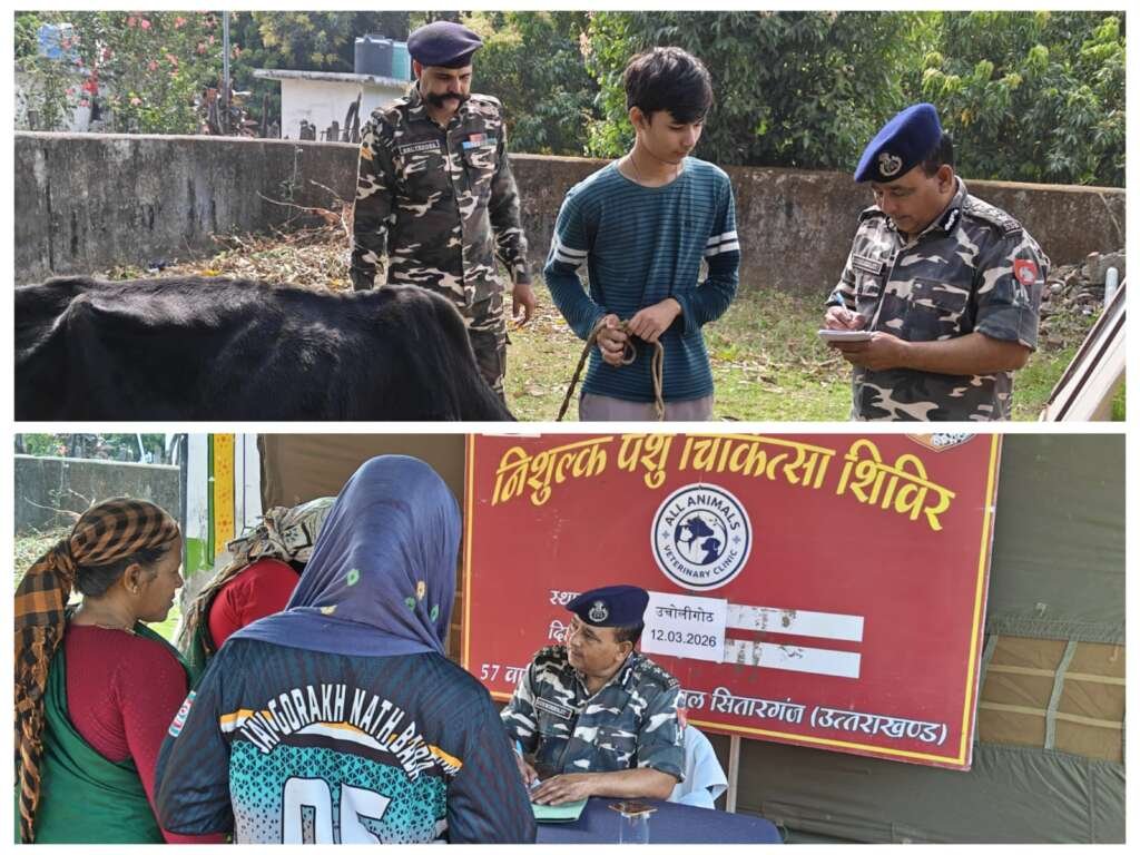 टनकपुर (चम्पावत)। मनोज कुमार, कार्यवाहक कमान्डेंट 57 बटालियन एस.एस. बी. के निर्देशानुसार भारत-नेपाल के सीमावर्ती क्षेत्र के ग्राम उचोलीगोठ समवाय बूम में पशु चिकित्सा शिविर का आयोजन डॉक्टर गुरविंदर जित सिंह कमान्डेंट (पशु चिकित्सा) के नेतृत्व में किया गया। शिविर में ग्रामीणों ने अपने पशुओ का इलाज कराया | शिविर में 19 ग्रामीणों के 46 पशुओं का इलाज किया गया। शिविर में सम्बंधित डॉक्टर ने पशुपालकों को पशुओं होने वाली मानसूनी बीमारी, खुरपका, मुहपका, गलघोटू, डिवॉर्मिंग, प्रजनन संबंधी. मिल्क फीवर, कीटोसिस जैसी गंभीर बीमारी तथा उसके बचाव के उपाय, रख रखाव, खान पान आदि की जानकारी दी नाबार्ड से पशुओं हेतु लोन, डेयरी उद्योग पर जोर दिया ताकि ग्रामीणों को रोजगार मिल सके शिविर में निरीक्षक संजय कुमार, सहायक उप-निरीक्षक अनिल. मुख्य आरक्षी हरमुख सिंह, आरक्षी भूपेन्द्र के साथ SSB के कई जवान तथा ग्रामीण मौजूद रहेअंत में डॉक्टर गुरविंदर जित सिंह कमान्डेंट (पशु चिकित्सा) ने उपस्थित सभी ग्रामीणों का आभार व्यक्त करते हुये उन्हें विश्वास दिलाया की भविष्य में भी सशस्त्र सीमा बल द्वारा सीमावर्ती क्षेत्र में इस तरह के कार्यक्रम आम नागरिको के उत्थान के किए जाते रहेगे।