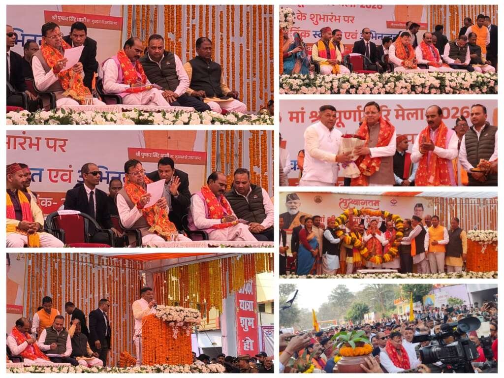 टनकपुर (चम्पावत)। मुख्यमंत्री पुष्कर सिंह धामी ने चम्पावत को ₹74.54 करोड़ की विकास योजनाओं की सौगातविश्व प्रसिद्ध माँ पूर्णागिरि मेला-2026 के शुभारंभ अवसर पर मुख्यमंत्री पुष्कर सिंह धामी ने जनपद चम्पावत को ₹74.54 करोड़ की विभिन्न विकास योजनाओं की सौगात दी। उन्होंने ₹64.95 करोड़ की 5 योजनाओं का लोकार्पण तथा ₹9.59 करोड़ की 4 योजनाओं का शिलान्यास किया।लोकार्पित प्रमुख योजनाओं में टनकपुर-जौलजीबी मार्ग पर चलथी नदी पर ₹50.14 करोड़ की लागत से निर्मित दो लेन मोटर सेतु, ग्राम खिरद्वारी में जनजातीय बहुउद्देशीय भवन, नरियाल स्थित राजकीय पशु प्रजनन फार्म के विकास कार्य, गुरु गोरखधाम में पर्यटक सुविधाएं तथा श्यामलाताल में ‘लेक फ्रंट डेवलपमेंट’ कार्य शामिल हैं।इसके अतिरिक्त बाराकोट में अनावासीय भवन, एड़ी मेला स्थल कालूखान के सौंदर्यकरण, बनबसा में बालिका इंटर कॉलेज परिसर में पार्क निर्माण सहित अन्य जनोपयोगी कार्यों का शिलान्यास किया गया।मुख्यमंत्री ने कहा कि सरकार “विकल्प रहित संकल्प” के साथ चम्पावत को आदर्श जनपद बनाने की दिशा में कार्य कर रही है। इस अवसर पर सांसद एवं केंद्रीय राज्य मंत्री अजय टम्टा सहित अनेक जनप्रतिनिधि व अधिकारी मौजूद रहे।